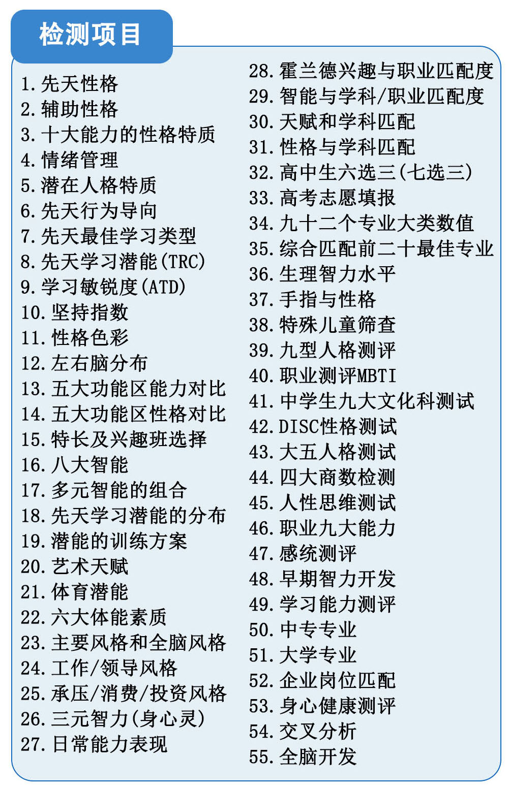 - 天赋测评全国普及:1280元/版(不同年龄,不同版本)